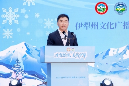 伊犁州文化广播电视和旅游局党组成员、副局长崇晶在致辞中动情地说:“福建省一直是伊犁的重要客源地之一。今年1—10月,伊犁州共接待福建省游客约22.62万人次,同比增长27.7%。今天,我们在福州不仅向大家介绍冬日里多彩、浪漫、独特的伊犁,也诚挚邀请大家到伊犁赏天鹅蹁跹、探蓝冰冰雕、游雪山冰川、泡千年温泉、看天马踏雪、观雾凇满城、滑极致粉雪、品多彩民俗。”