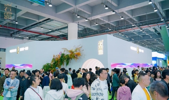 岩霸展馆突破以往风格,以现代、清新的设计理念,打造了一个融合未来感与艺术美学的茶空间。纯白主色配合流动幻彩LED光影,营造出沉浸式参观氛围,吸引众多茶友驻足交流。入口处的「光影长廊」通过光线引导,逐步带领参观者深入感受岩霸的茶香世界。开展首日,岩霸展区人气持续高涨,两度启动限流措施,成为现场关注焦点之一。
